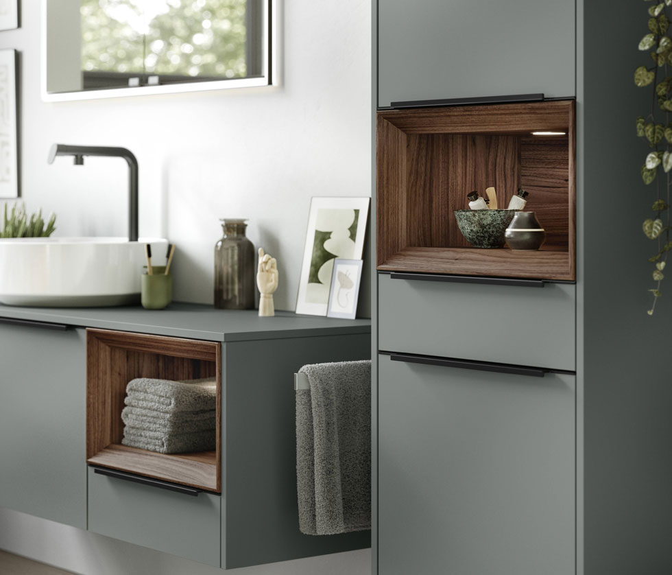 Der Trend zu individuell geplanter Inneneinrichtung mit wohnlichem Charakter setzt sich auch im Badezimmer fort. Somit sind auch die Ansprüche an eine perfekte Stauraumorganisation sowie eine ergonomische Möblierung – schlicht an Komfort – ebenfalls nachhaltig gestiegen. Unsere Möbel sind aufgrund ihrer Qualitätsmerkmale für diese Anforderungen bestens gerüstet. Ein eigenständiges Sortiment für Badmöbel, Waschtische und Accessoires ergänzt daher unsere Kollektion. Wir planen jedes Bad individuell am Computer für Sie in 3D. Basierend auf Ihrem Grundriss und Ihren Wünschen.