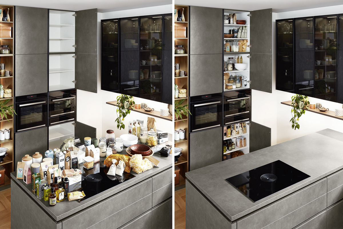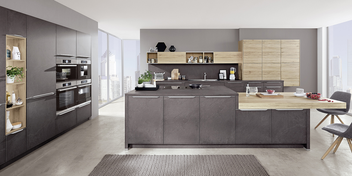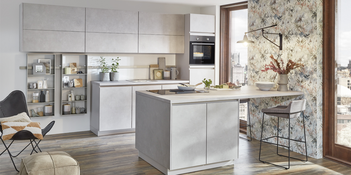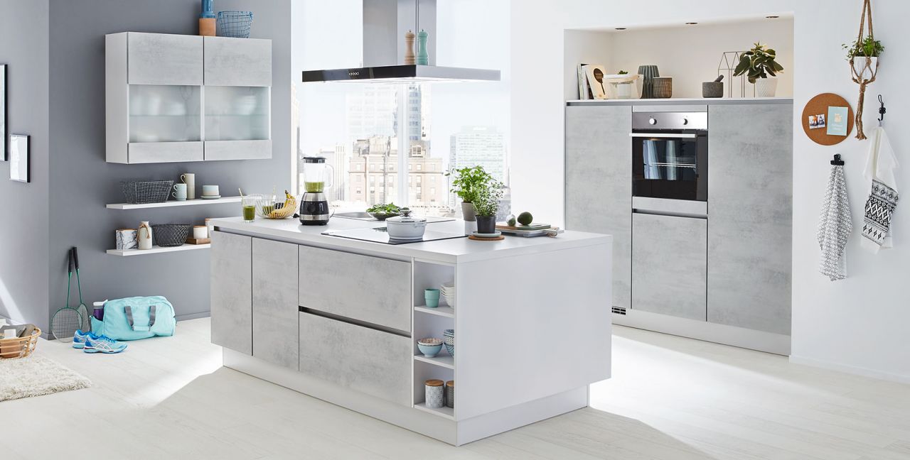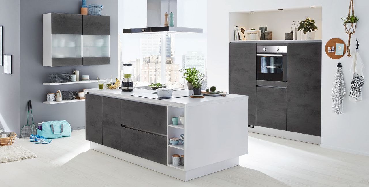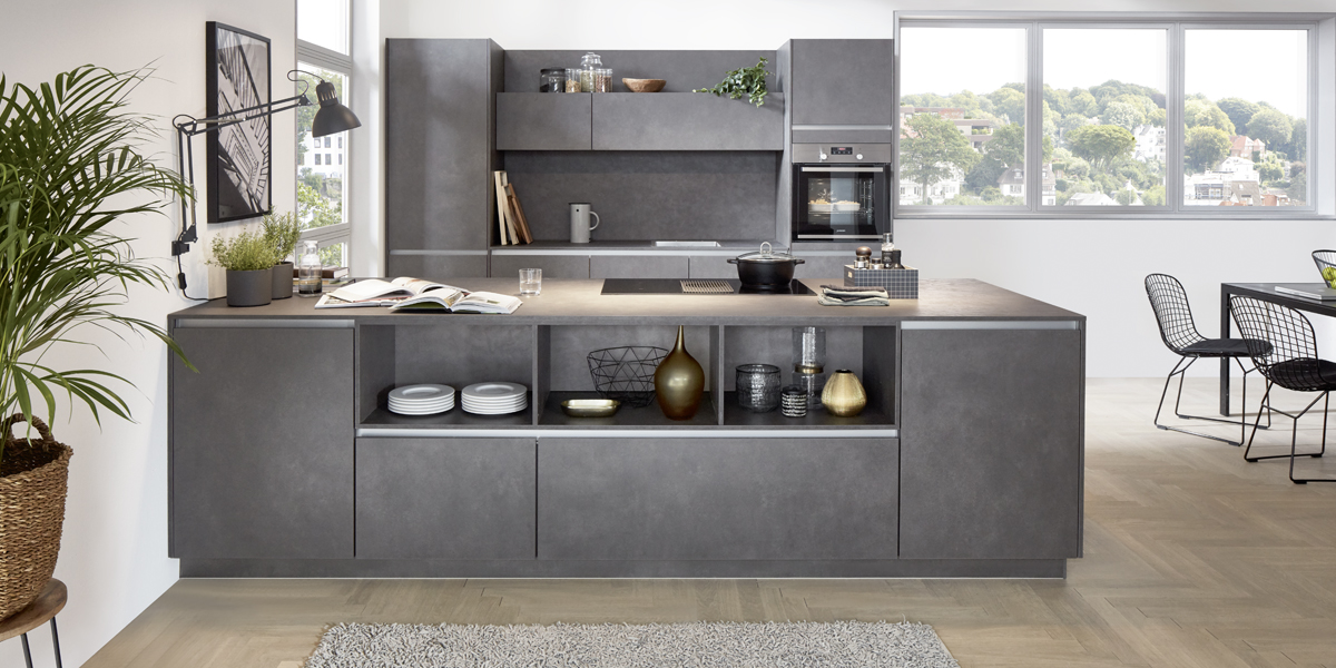 Inklusive Einbaubackofen Edelstahl Laurus LEB3 Energieeffizienzklasse A, Glaskeramik Kochfeld Laurus LCA600, Inselesse Edelstahl Elica JOYE INSEL-A Energieeffizienzklasse A, Kühlschrank Laurus LKG88E Energieeffizienzklasse E, Einbauspüle Edelstahl Rodi Okio Line 85 Deep, Unterschrank mit Großraumauszügen, Wandschrank mit Segmentglastüren, Wandborden, Unterschrankregal.